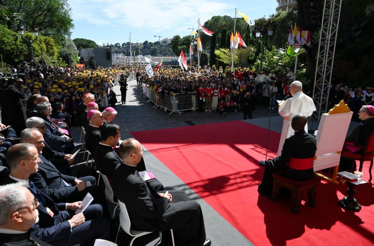 Pope Leo meets Monaco’s youth, urging faith, hope, and self-giving amidst doubt and modern frenzy at St. Devota Church.